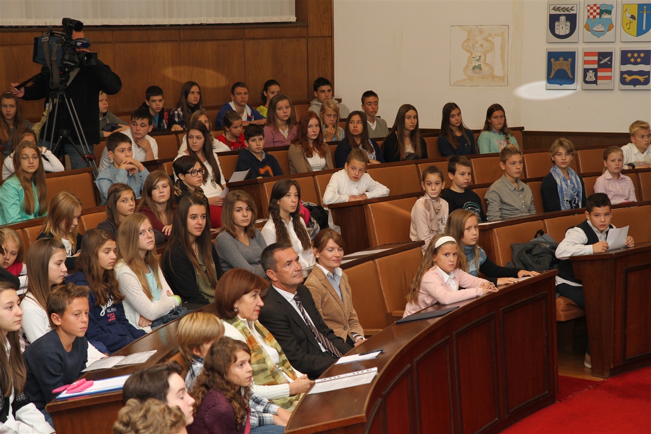 Lana Skolan, Lana Zoretić, Laura Radočaj i David Trbuščić imali su priliku izgovoriti ove riječi za govornicom Hrvatskog sabora, tj. obratiti se predsjedniku Hrvatskog sabora Josipu Leki i iznijeti probleme koje su uočili u zajednici. Naime, ovih četvero učenika sudjelovalo je na smotri pod nazivom „Da sam ja zastupnik/zastupnica Hrvatskog sabora“ koja je održana 4. listopada 2013. u Zagrebu.
