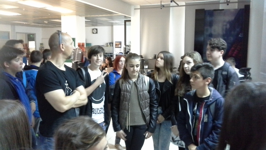 Učenici članovi novinarske grupe posjetili su Hrvatsku-radio televiziju (9.5.2017.) Na Prisavlju nas je dočekala Nada Chedid iz službe za odnose s javnošću i povela nas u obilazak najveće medijske kuće u Hrvatskoj. Prvo nam je pokazala nekoliko fotografija iz povijesti HRT-a i ogromne kamere kojima su se nekad snimale TV emisije. Saznali smo da je HRT s emitiranjem počeo 1956. godine prijenosom sa Zagrebačkog velesajma.