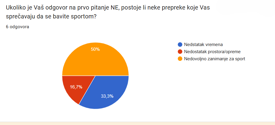 S druge strane, oni koji se ne bave sportom najčešće ističu nedostatak vremena, dok neki priznaju da jednostavno nemaju dovoljno interesa.