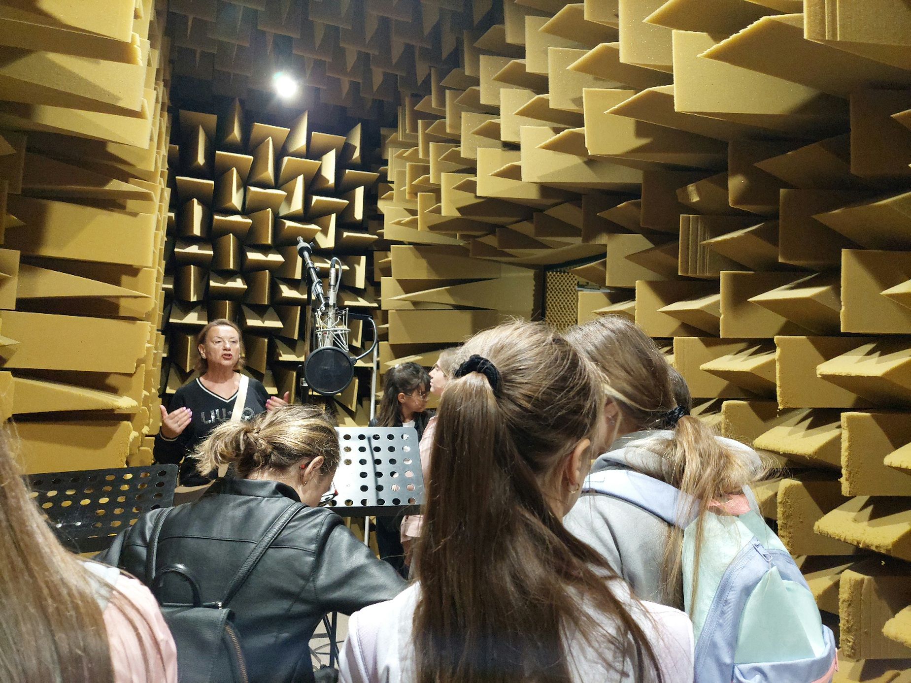 Tijekom posjeta zavirili su i u prostorije povezane sa snimanjem zvuka. Posebno zanimljiva bila je takozvana gluha soba, čiji su zidovi obloženi velikim spužvama dugima i do dva metra. U njoj se ne smije boraviti dulje od trideset minuta jer potpuna tišina može izazvati nelagodu i glavobolju. Posjetili su i prostoriju za snimanje zvuka, ispunjenu zastorima i spužvama, gdje su primijetili kako se zvuk mijenja i stvara poseban dojam jeke.