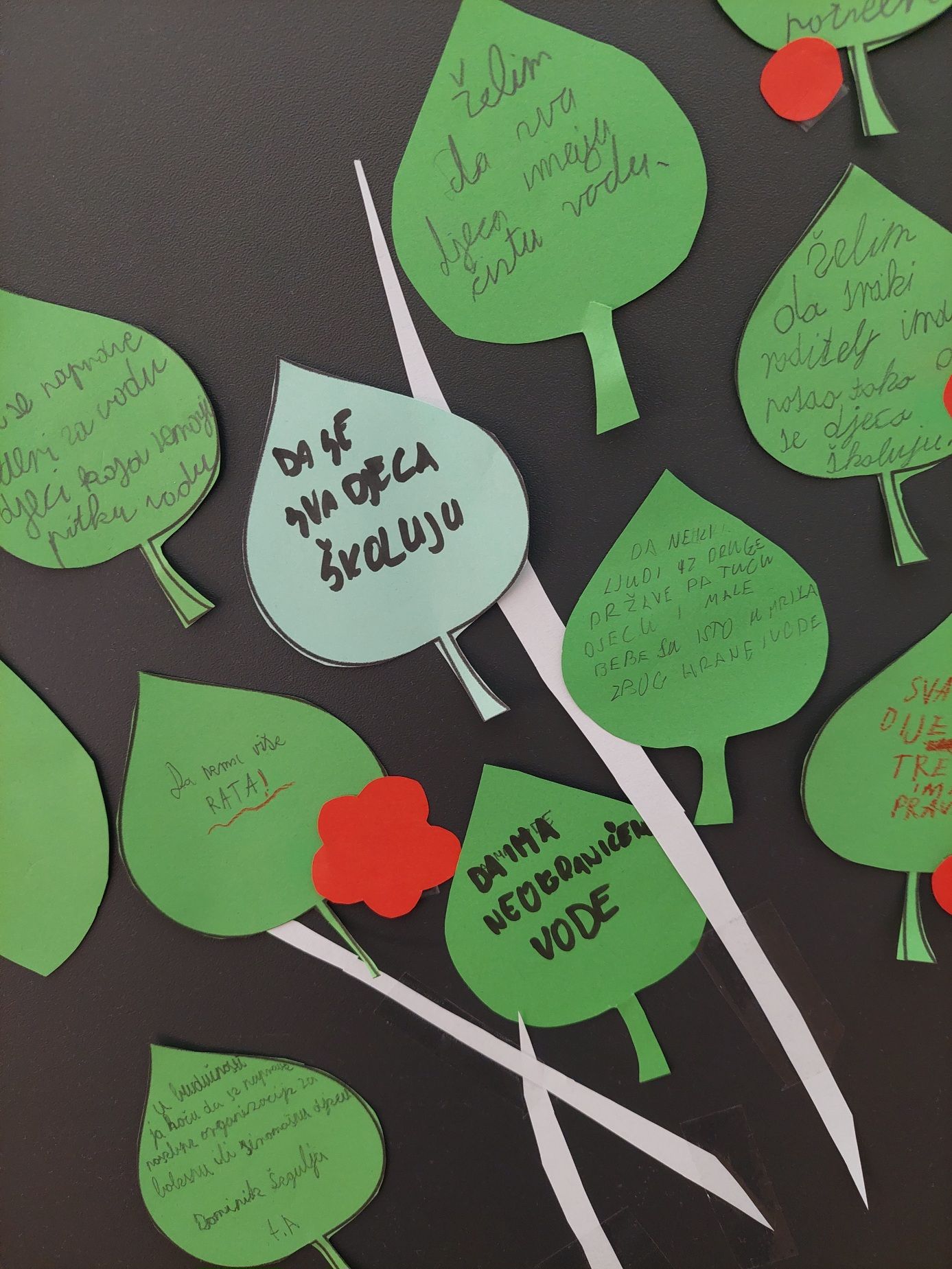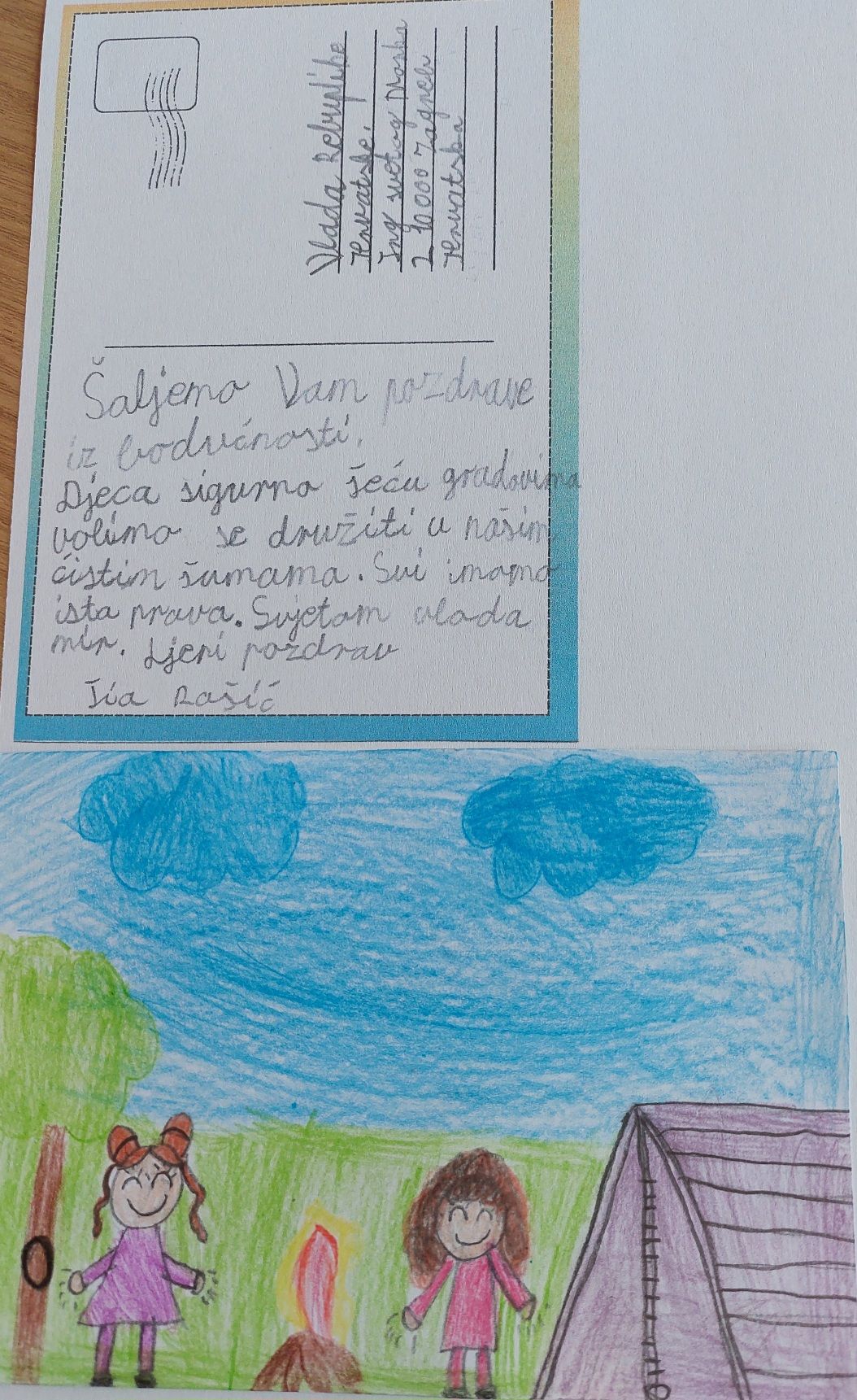 Učenici su radili “razglednicu iz budućnosti”, nacrtali su i napisali poruku kao da dolazi iz svijeta u kojem se dječja prava poštuju. Razglednice su poslali na adrese Grada Duga Resa i Vlade Republike Hrvatske. Druga grupa radila je “stablo budućnosti” tako da je svaki učenik na jednom ili više listića napisao neku svoju želju za bolju budućnost.
