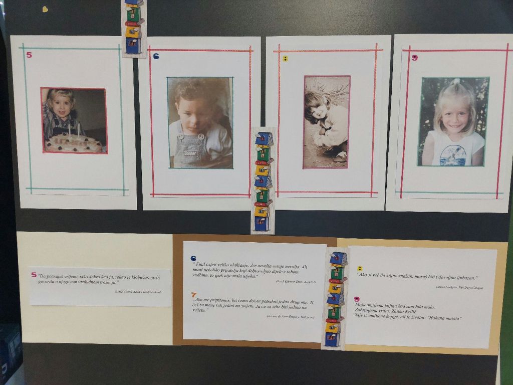 Na izložbi su bile prikazane fotografije učitelja iz njihovog djetinjstva, što je učenicima bilo posebno zanimljivo i zabavno. Uz svaku fotografiju nalazila se i najdraža knjiga iz učiteljeva djetinjstva te omiljeni citat iz te knjige.