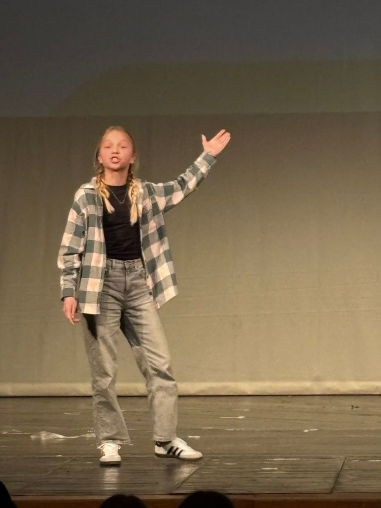 U dvorani Zorin doma održana su 22 nastupa učenika osnovnih škola. Našu je školu predstavljala Iva Srakočić koja je izvela monolog iz romana Smogovci autora Hrvoja Hitreca.