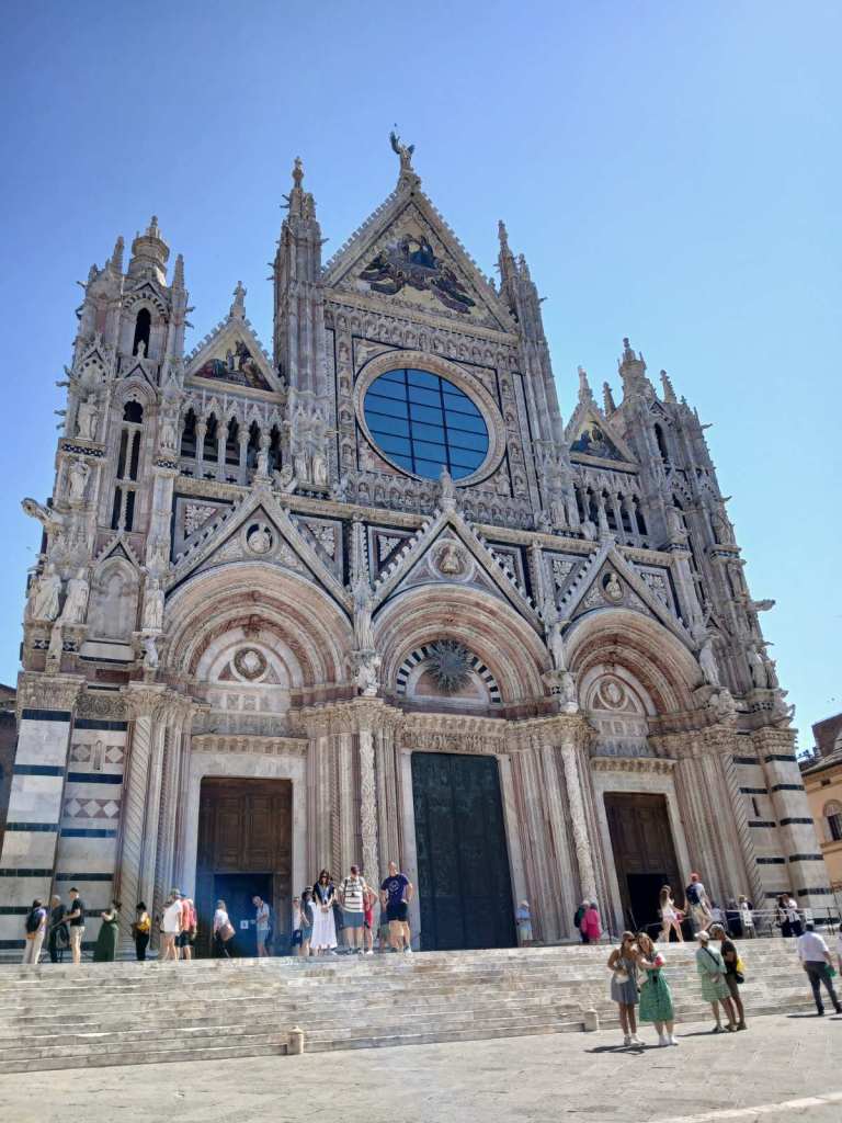 Prva građevina koju smo posjetili bila je Basilica Cateriniana San Domenico (bazilika sv. Katarine i sv. Dominika) gdje je bio izložen prst sv. Katarine. Katarina je bila dvadeset i peto dijete svojih roditelja. Svetica je poznata po služenju siromasima i uključenosti u politiku. Poticala je papu Grgura XI. da se iz Avignona vrati u Rim. Uvijek sam mislila da su pape stolovali u Rimu, međutim u Sieni sam naučila kako su više od pedeset godina boravili u Francuskoj.