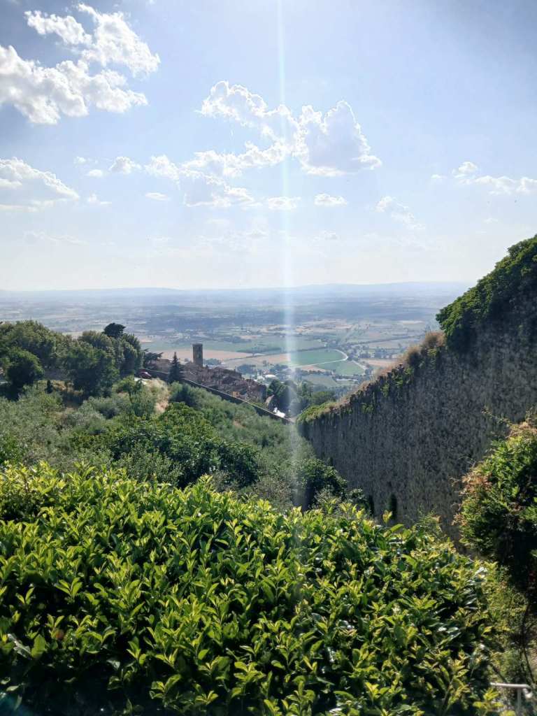 Na put „Pod suncem Toskane“ krenuli smo u ranim jutarnjim satima i putovali kroz Hrvatsku i Sloveniju do južne Toskane. Kada sam kroz prozorska stakla ugledala gradić smješten na brežuljku okružen čempresima, znala sam da je to Cortona. Njena povijest seže sve do vremena Etruščana. Veliki, čvrsti kameni zid i danas okružuje grad. Zidovi izlizani vremenom bili su topli pod prstima. Veličanstveno je stajati pred nečim što su ljudi svojim rukama gradili prije više od dvije tisuće godina. Kamene ulice dovele su nas na vrh Cortone gdje se nalazi Basilica di Santa Margherita (bazilika sv. Margarete) i zadivljujući pogled na dolinu Val di Chiana te Lago Trasimeno (Trazimensko jezero) kod kojeg se dogodila bitka 217. g. pr. Kr. kad je Hanibal potukao Rimljane.